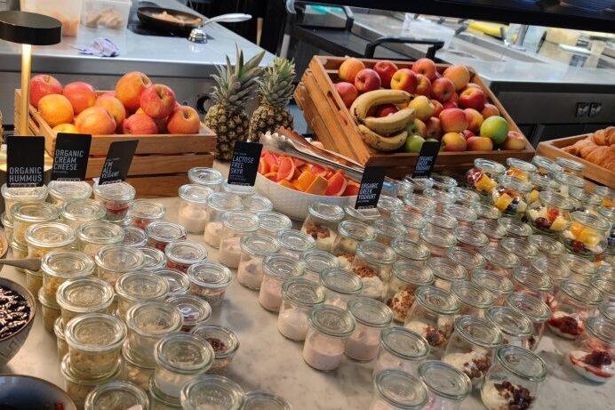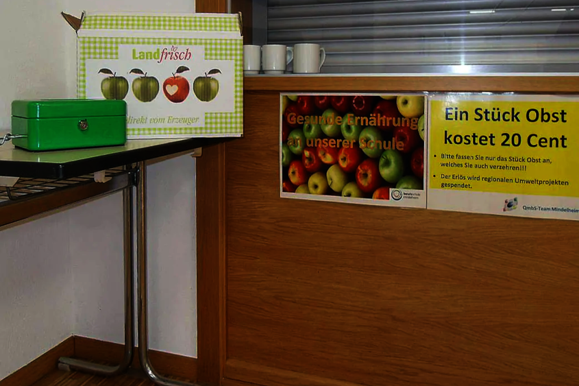 Als unverpackter Pausen-Snack gibt es frische Äpfel aus der Region in einem Selbstbedienungs-System. Das Angebot wird gut angenommen.
